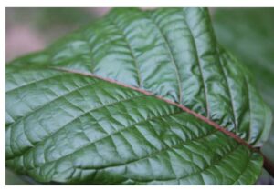 A kratom leaf, the source of an herbal supplement that users say can provide pain relief and relieve insomnia, among other uses.